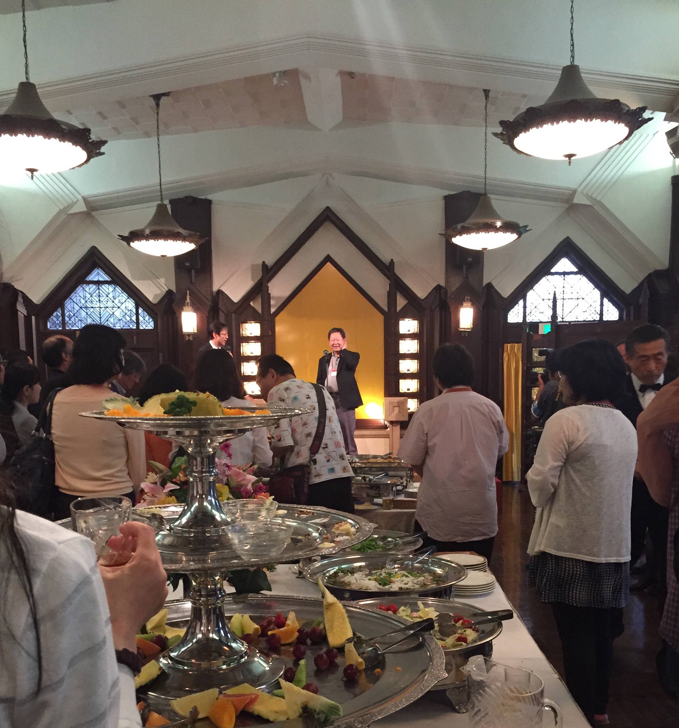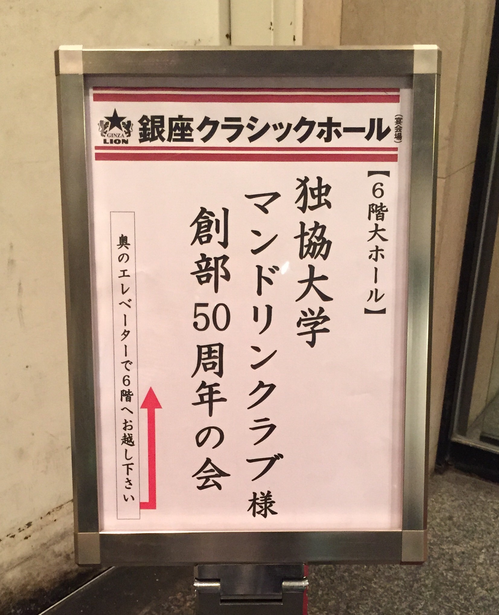 演奏会後には近くの会場へ移動し、立食パーティーをしてお祝いました。いろいろな先輩方とお話できました。創部に関わった先輩方のお話も聞くことができました。以前から気になっていた、古典ギター部から独立して創部した経緯も知ることができました!今日はDMC50年の歴史を感じることができ、嬉しいです。