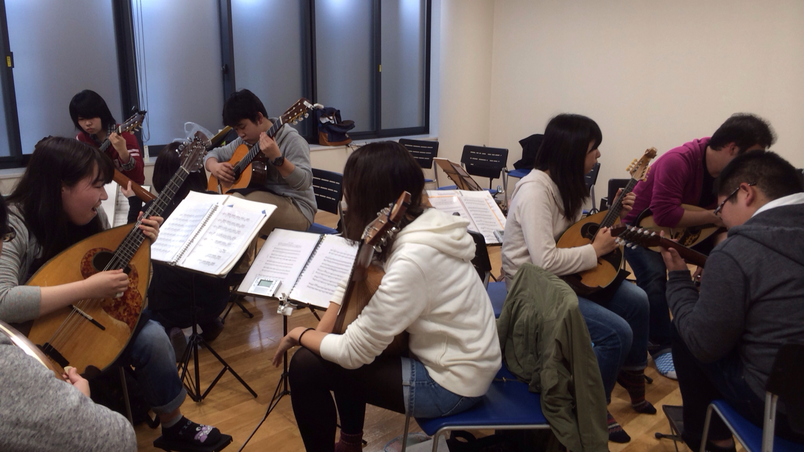 マンドラパート・ギターパートはそれぞれ10人近くいました。いつも全パート合計20人足らずで練習している私たちにとっては大迫力です!!