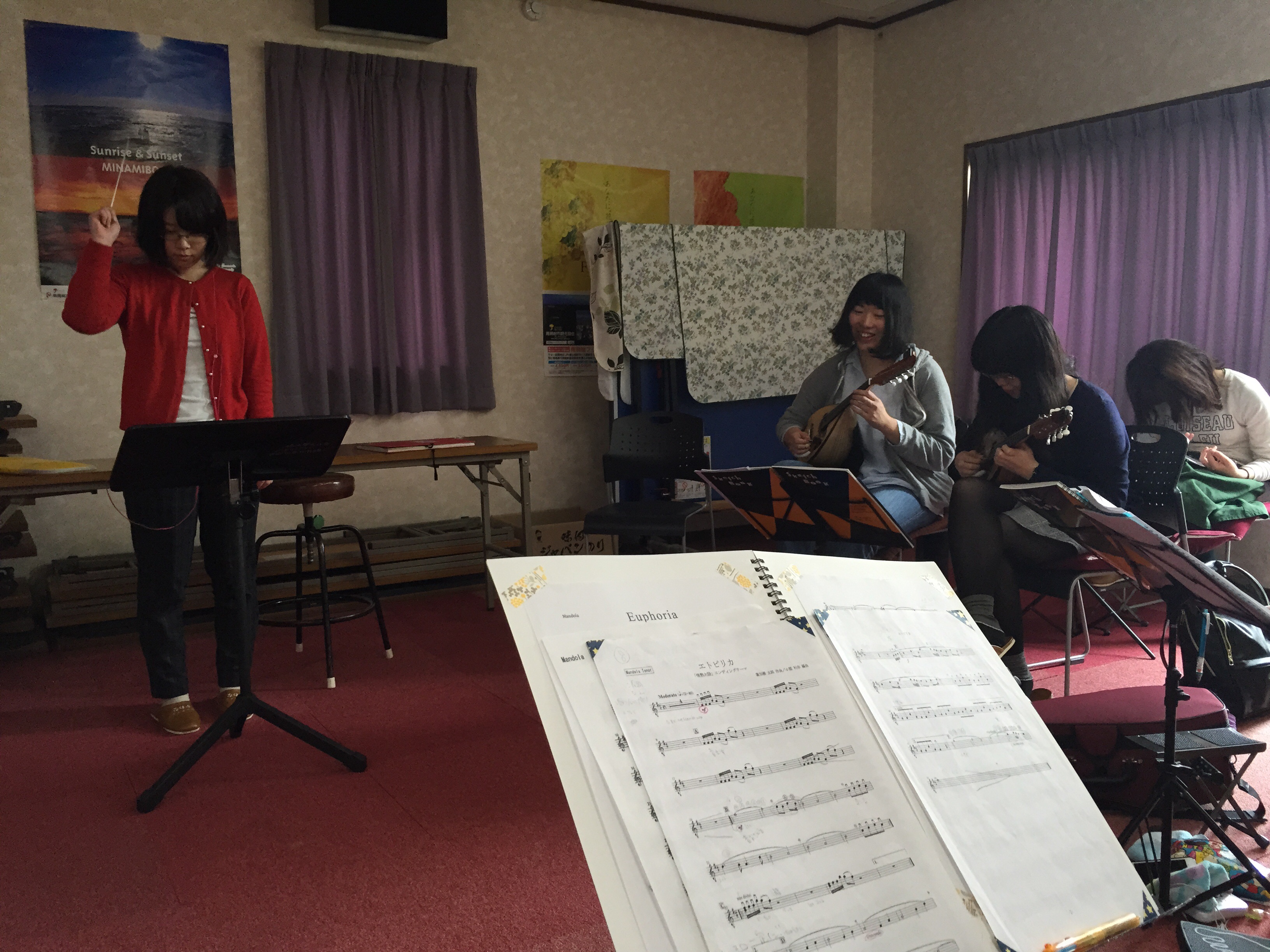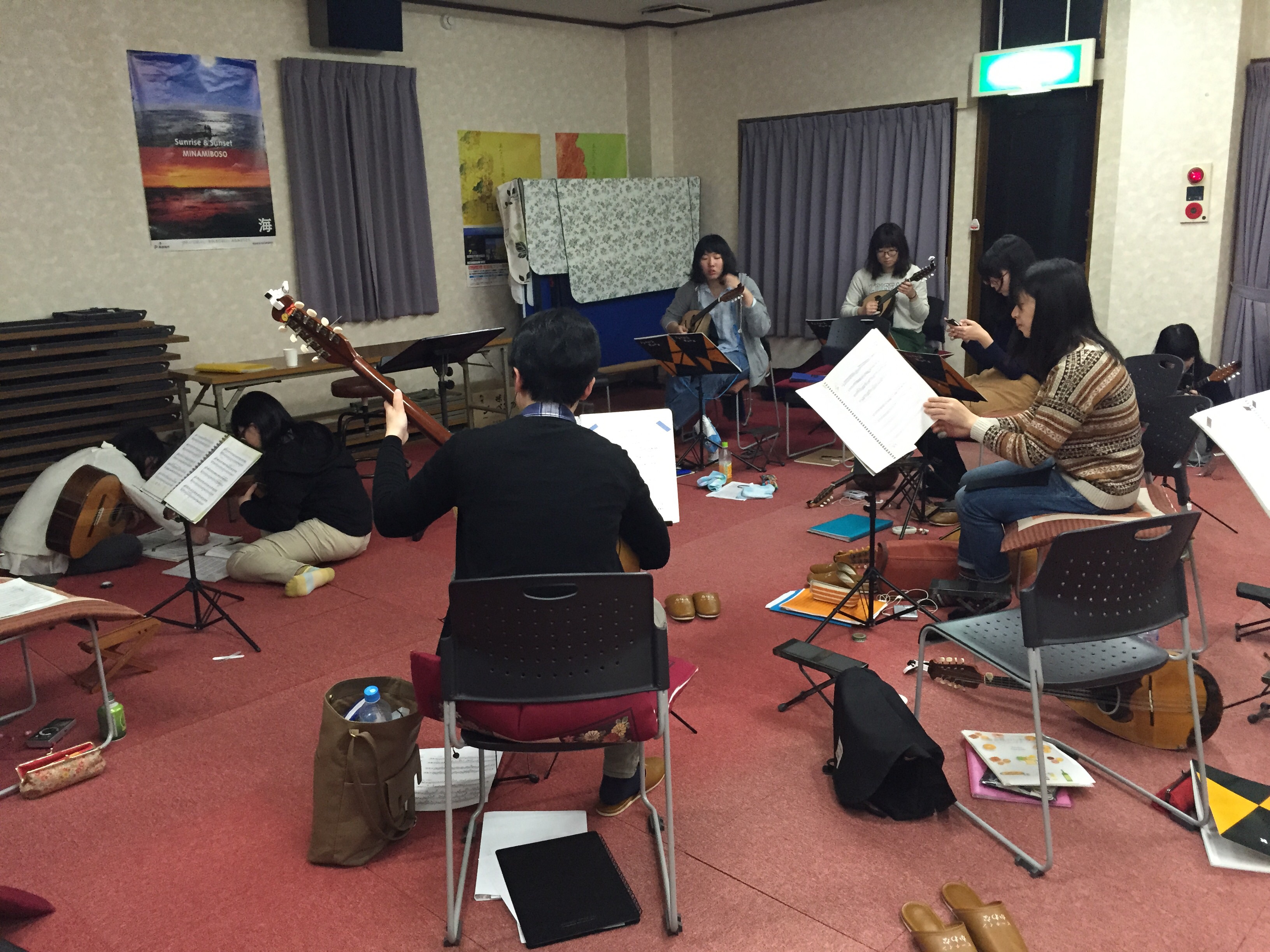 午後からはOBが2名参加してくださり、マンドリンの群れとメリアの平原にてを練習しました。みんなの前で一人ずつ弾くという練習もありました(>_<)でも今日の練習で弾けない所が減ったと思います!
