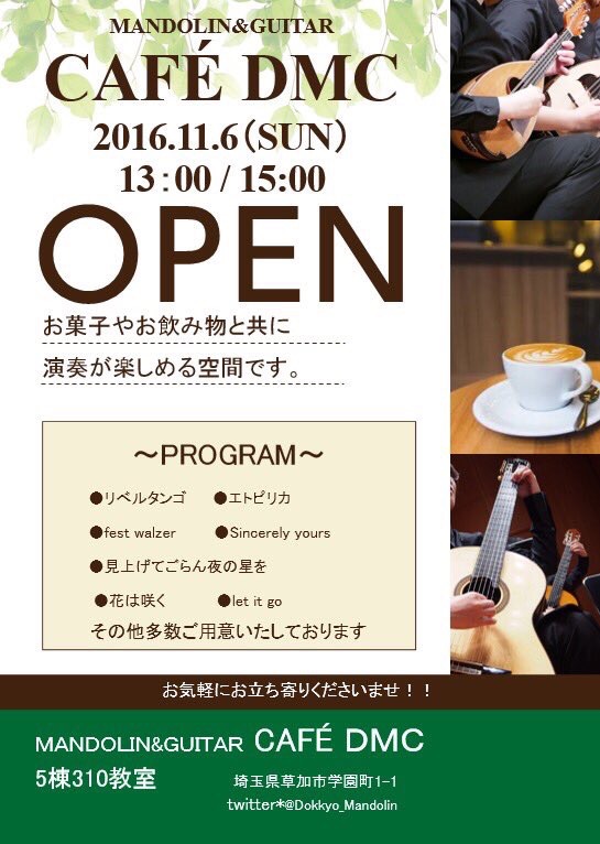 獨協大学で開催される雄飛祭に、マンドリンクラブも今年は11月6日(日)のみ参加します!!